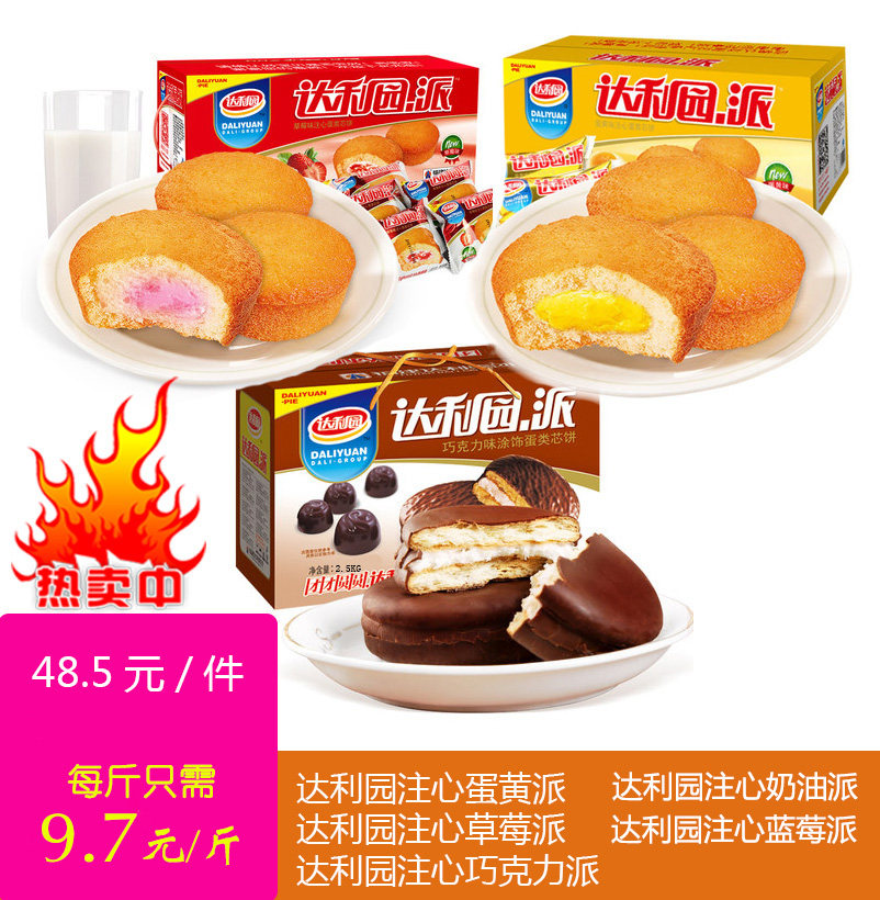 包邮达利园巧克力派整箱5斤装蛋黄草莓奶油味涂饰蛋类芯饼点心