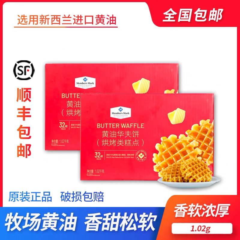 山姆代购 黄油华夫饼(烘烤类糕点)1.02kg 整箱装 黄油蛋糕