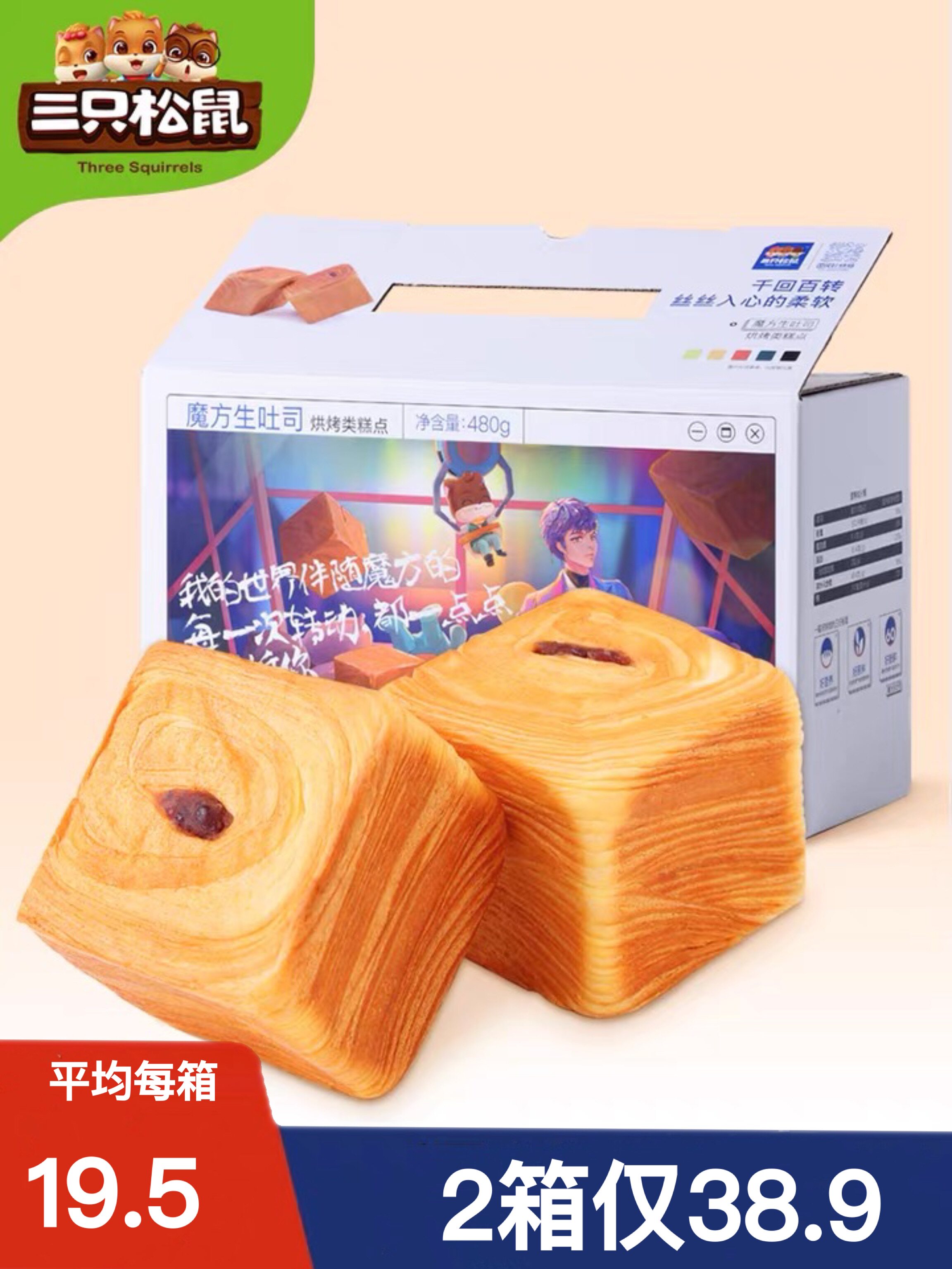 【三只松鼠_魔方生吐司480g】早餐营养代餐饱腹面包蛋糕类零食