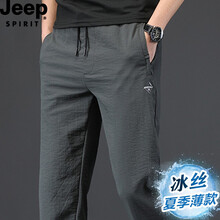 JEEP吉普休闲裤男冰丝薄款直筒宽松弹力运动长裤中年商务男裤装大码牛仔裤商务裤子 1118灰色 XL码