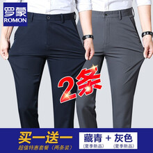 罗蒙品牌【两条装】冰丝薄款休闲裤男士直筒宽松2021新款夏季商务正装黑色弹力免烫西裤长裤子 藏青色+灰色【两条装】 33码