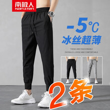 南极人休闲裤男裤裤春夏季宽松束脚裤男士哈伦裤男学生校裤九分小脚裤冰丝长裤男夏 黑色束脚+灰色束脚 XL