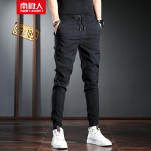 南极人(Nanjiren)【超值两件装】夏季休闲裤男2020新款松紧腰修身小脚暗花男裤韩版束脚裤薄 黑色 32