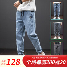 跃择 男士牛仔裤男夏季薄款韩版潮流春秋潮牌修身百搭哈伦裤春秋休闲裤宽松2021小脚裤大码九分工装裤子 2083蓝色 标准尺码(请对应尺码下单)