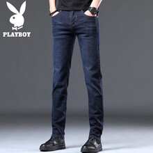 花花公子(PLAYBOY)牛仔裤男夏季商务休闲裤男士微弹直筒裤子男裤宽松长裤 蓝黑 32