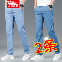 金盾 牛仔裤男夏季薄款男装夏装裤子商务休闲裤直筒裤男士长裤夏天男裤浅蓝色大码宽松裤时尚百搭 2件装 8175B浅蓝+8077B浅蓝 32