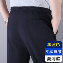 冰丝休闲裤男爸爸夏季薄款松紧腰中老年裤子中年男士宽松老人裤 黑蓝色 3XL【适合腰围2尺8-2尺9】