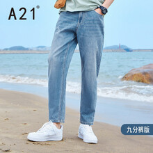 A21男装夏季牛仔九分裤舒适小直筒裤九分裤复古猫须纹牛仔裤潮版百搭 F401126003 浅中蓝 30(175/76A)