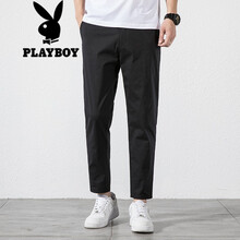 花花公子 休闲裤男2021夏季新款男装修身直筒工装裤裤子男裤薄款九分裤男士长裤 黑色 28码/2尺1