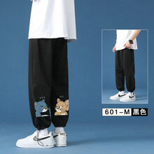 FossPhil裤子男夏季宽松束脚裤男新品阔腿裤男士冰丝透气运动青少年学生卫潮流抽绳弹力九分休闲长裤 k21601-M黑色【猫和老鼠】 M(115-130斤)