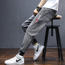 夏季薄款男士牛仔裤 宽松高弹力港风潮流运动九分休闲哈伦裤修身小脚学生工装松紧带束脚裤 CFH-939灰色【薄款/宽松/高弹】80%客户选 M【(28-29码)...