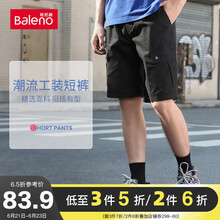 班尼路2021夏季新款休闲裤男潮流ins时尚百搭直筒低腰短裤青年棉质印花宽松多口袋工装五分裤 00A M