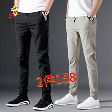 稻草人休闲裤男2021夏季新品韩版潮流直筒商务男士裤子弹力修身小脚长裤 【66】黑色 31