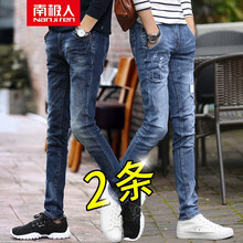 【两条装】南极人牛仔裤男青年时尚裤子休闲修身破洞弹力长裤男生男士小脚工装百搭冬季保暖男裤 3578款+3540款 31