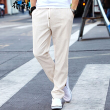 乔能(QIAONENG)亚麻休闲裤男2021夏季男裤薄款长裤直筒修身裤子 米白色 XL