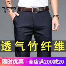 啄木鸟休闲裤男春季男士休闲裤春秋款西装裤宽松直筒中年男裤夏季竹纤维商务长裤子男 藏青 32