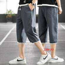 穆杉裤子男士七分裤夏季冰丝短裤男裤潮牌款流行八分夏季休闲裤五分裤 深灰(七分裤) XL