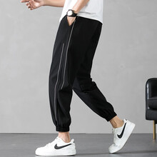 潮阿瞒 夏季男士休闲长裤韩版潮流2021春秋新款冰丝薄款束脚运动九分裤子夏季宽松ins潮牌百搭 K03黑色 XL