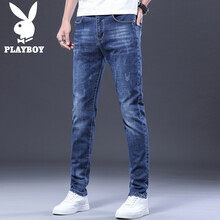花花公子牛仔裤男士2021夏季新款潮牌修身韩版小脚裤子弹力休闲男裤百搭男装 6605蓝色 28