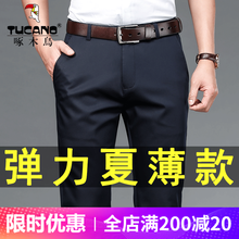 啄木鸟休闲裤男2021春夏季新款商务休闲裤男宽松直筒薄款男裤弹力抗皱中年夏季冰丝长裤子男 宝蓝色 30/2尺3