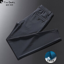 皮尔卡丹夏款高端丝滑男裤牛奶丝冰丝薄款长裤弹力百搭宽松直筒裤子针织 黑色 31