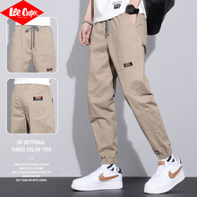 Lee Cooper休闲裤男2021夏季薄款透气男裤韩版宽松运动束脚工装裤百搭男士九分裤子 卡其色 28码