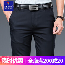 啄木鸟休闲裤男夏季薄款宽松直筒男裤中年男士商务冰丝裤免烫抗皱天丝裤子男 藏青 36