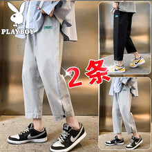【两条装】花花公子休闲裤男夏季新款时尚潮流薄款宽松透气直筒九分裤子百搭抽绳系带男生松紧潮牌男装长裤子 K133灰色+K136黑色 XL