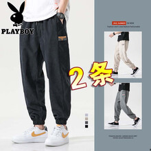 【两条装】花花公子休闲裤男夏季新款时尚束脚小脚裤宽松透气男士九分裤青春休闲百搭潮流青年潮男装长裤子 SW-2008黑色+SW-2005卡其 XL
