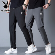 花花公子【超值两条装】新款薄款休闲裤男士时尚仿冰丝裤长裤男 黑色+灰色 XL