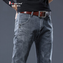 【买一送一】高端灰色牛仔裤男夏季新款韩版潮流修身小脚男裤时尚百搭裤子男春夏男装九分长裤子男 8913深灰(单条) 31码 适合120~130斤
