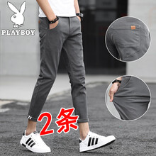 花花公子(PLAYBOY)牛仔裤男修身小脚2021夏季新款弹力百搭九分裤薄款裤子男休闲男裤 MP 909深灰_909黑色 31