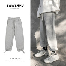威廉爵驰休闲裤男21年春季新款卫运动裤子男士韩版潮流宽松直筒小束脚哈伦裤青少年情侣学生长裤 浅灰色 L