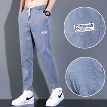 肆缄夏季薄款哈伦裤男士牛仔裤男宽松潮流男士休闲百搭束脚工装休闲长裤子男 蓝色 L