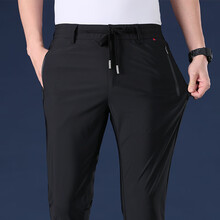 潇扬时尚男裤 高端冰丝休闲男裤薄款 垂顺抗皱免烫四面弹长裤 男士夏季超薄款高弹力休闲裤男 薄款冰丝裤XR3399黑色 XL建议体重130-140斤