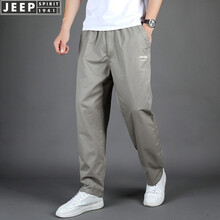 JEEP吉普休闲裤男宽松直筒裤2021夏季薄款纯棉时尚休闲男士宽松大码弹力长裤子 浅灰色 2XL