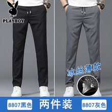【两件装】花花公子夏季新款冰丝休闲裤男直筒潮流商务休闲宽松男士裤子运动速干直筒裤夏天男装 黑色+深灰 31