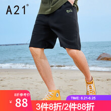 A21夏季2021新款男装针织宽松橡筋腰直筒中裤运动休闲五分裤透气新疆棉 黑色 170/70A/M