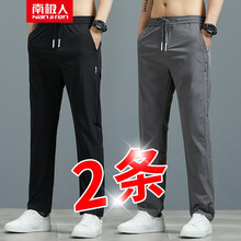 【两条装】南极人休闲裤男夏季冰丝休闲裤直筒宽松弹力薄款速干运动长裤透气夏裤 062黑色+062深灰 31