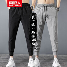 【两条装】南极人休闲裤男夏季薄款速干冰丝裤男士时尚弹力长裤男生裤子直筒速干九分裤工装男裤男装 黑色束脚+灰色束脚 XL