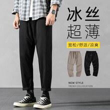 AFIL 休闲裤男士长裤子夏季韩版潮流九分修身裤男百搭春季束脚裤潮牌阔腿裤工装男生直筒冰丝裤子 299黑色 XL(130-155斤)