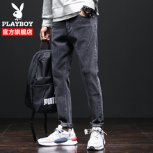 花花公子牛仔裤男2021夏季新款潮牌直筒宽松长裤子韩版休闲裤百搭青年学生男裤 黑灰 31