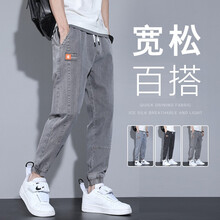 牛仔裤男夏季裤子男宽松新款薄款韩版潮流束脚工装哈伦裤男休闲长裤 2025浅灰 31