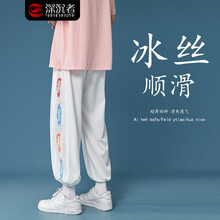深沉者 冰丝裤男夏季薄款宽松百搭运动休闲裤韩版潮流学生裤子垂感抽绳束脚九分裤 白色 M