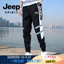 吉普裤子男2020春季新款宽松韩版潮流休闲裤学生针织裤男士运动长裤工装哈伦裤 白色 XL