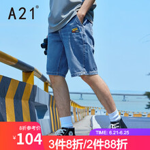 A21夏季2021新款男装 牛仔合体低腰直筒中裤休闲潮版印花牛仔裤 浅蓝 30