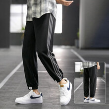 猪猪怡 休闲裤男夏季新款男士潮流百搭裤子束脚工装针织九分裤宽松学生百搭小脚长裤 655黑色 XL