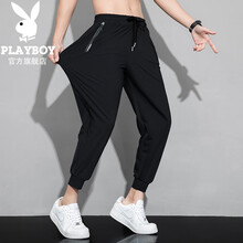 花花公子 夏季男裤休闲裤男生裤子潮流修身薄款束脚裤工装裤男小脚春夏男士九分裤潮牌夏装冰丝裤子男宽松 K2015黑色 M(推荐体重90-115斤)