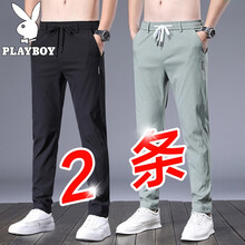 花花公子(PLAYBOY)休闲裤男宽松2021夏季薄款男士速干直筒长裤百搭潮流松紧腰裤子男 BYDD 8808浅绿+8808黑色 31