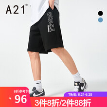 A21夏季2021新款男装 针织宽松橡筋腰直筒中裤男士百搭潮版休闲短裤 黑色 170/70A/M